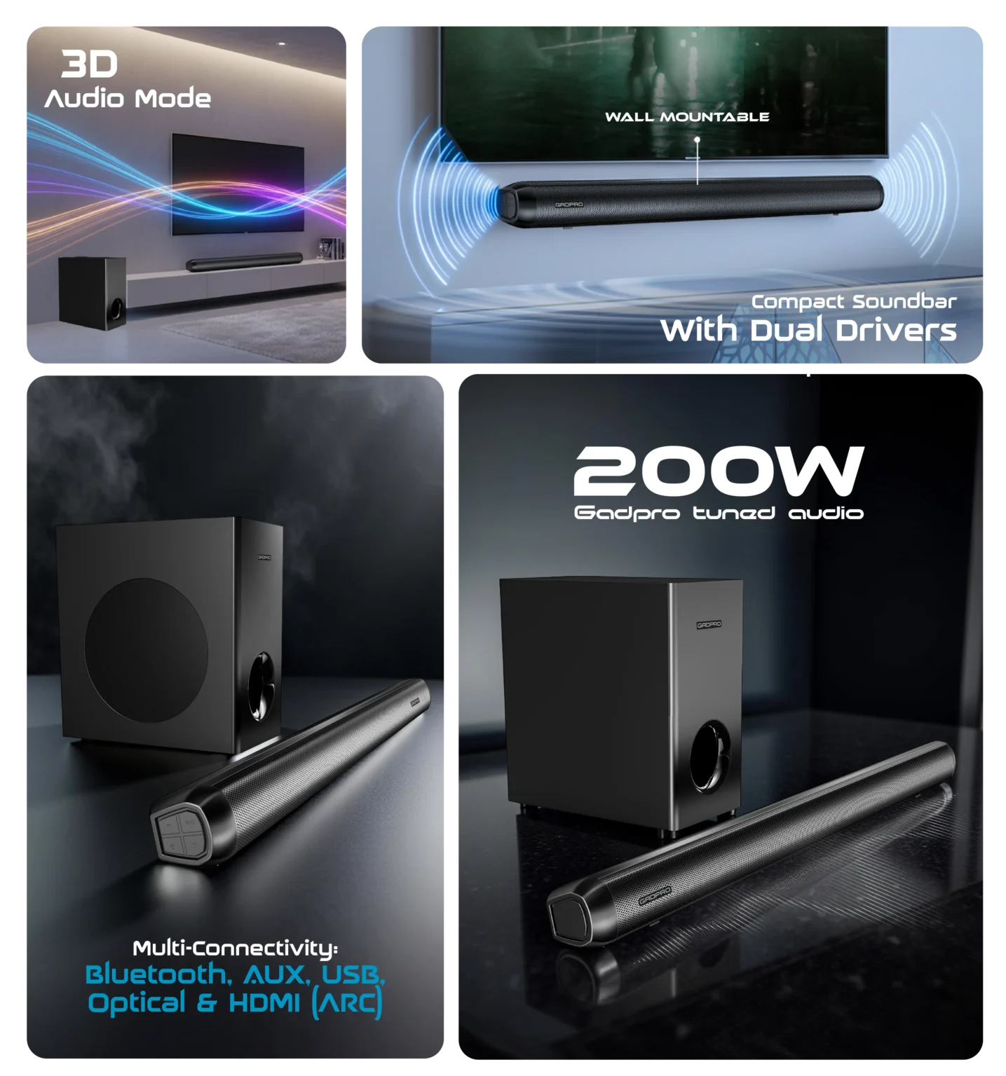 Bring your entertainment to life with the LUMIERE SB728—a compact soundbar system engineered for immersive audio and modern living spaces. Whether wall-mounted or placed beneath your screen, it blends seamlessly into your setup while delivering sound that’s anything but subtle.